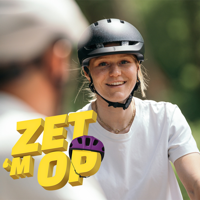 Nederlanders fietsen veel en graag, maar als fietser ben je ook kwetsbaar. Het dragen van een fietshelm verkleint de kans op ernstig hoofdletsel met circa 60% en op dodelijk letsel zelfs met 70%. De campagne ‘Zet ‘m op!’, een initiatief van het Ministerie van Infrastructuur en Waterstaat, moedigt daarom iedereen aan om vrijwillig een helm te dragen. Een goede helm bedekt het voorhoofd, de schedel en de slapen, en moet stevig zitten zonder te knellen.