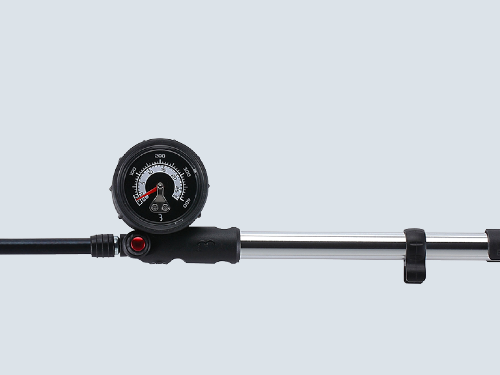 Genau wie bei deinen Reifen, musst du ab und zu die Luft in deinen Federelementen nachpumpen. Mit der AirShock ist das ganz einfach. Das spezielle Ventil macht es leicht, ein wenig Luft zu entlassen, um zu kontrollieren, ob du wirklich genau den Luftdruck hast, den du brauchst. Der Schlauch kann zur Seite gefaltet werden, damit die Pumpe ganz einfach verstaut werden kann. Schnell, genau und leicht in der Handhabung. Damit deine nächste Ausfahrt Spaß macht.