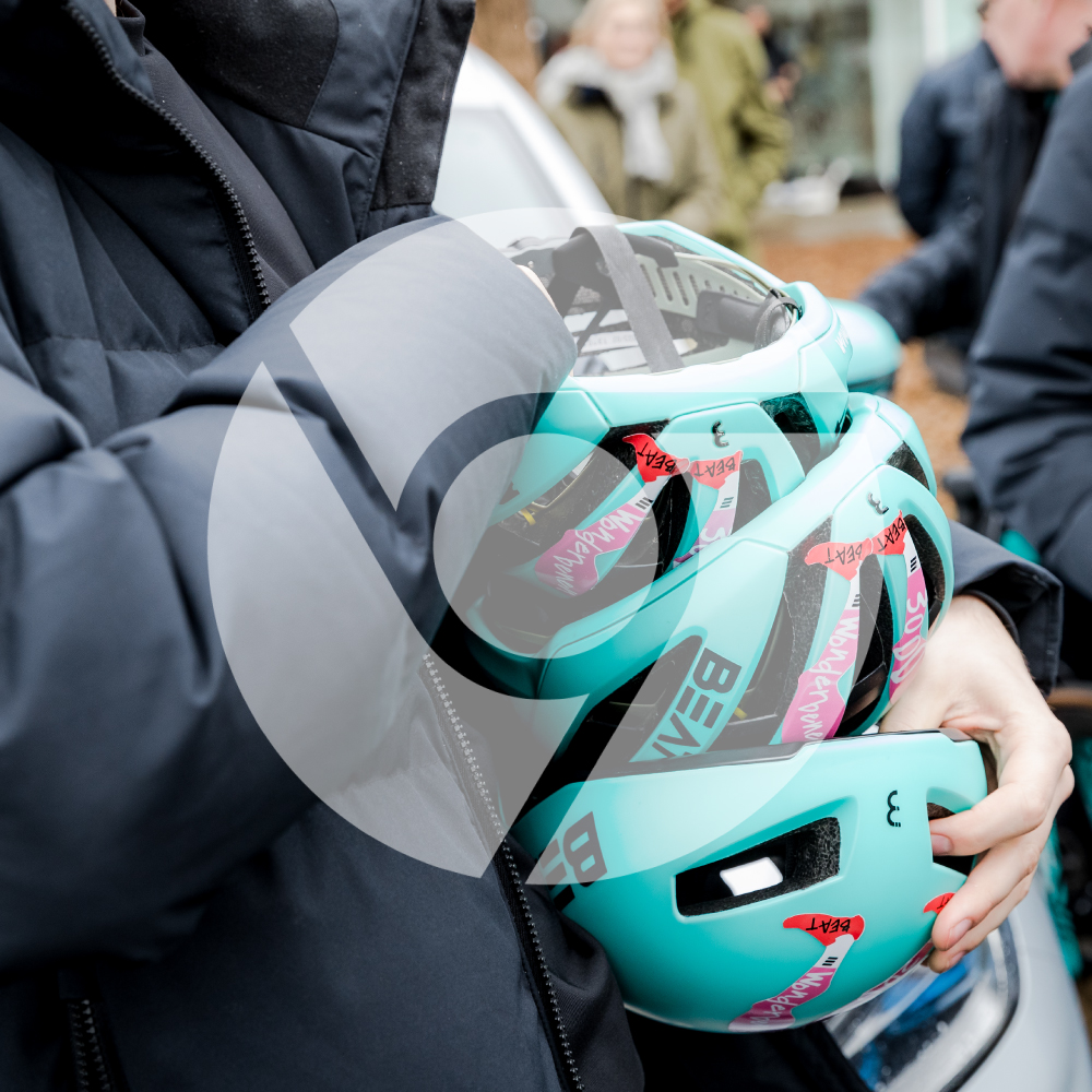 Of course, the blue helmets. They stand out perfectly in the peloton, and everyone finds them comfortable to use.