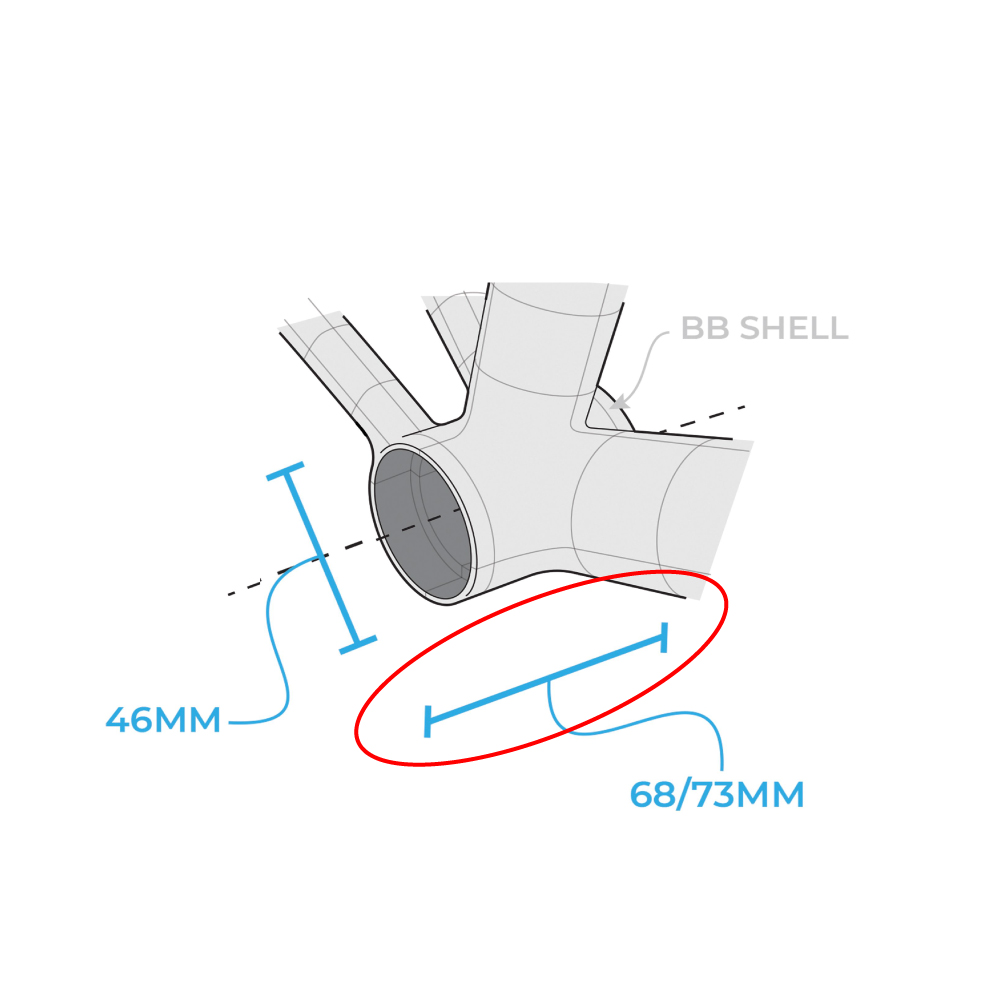 PF30 is also a PressFit type bottom bracket and thus no thread on the outside of the bottom bracket. It uses the same bearings as BB30. The only difference is that there is a cup in between the frame and the bearings for battery durability. The inside diameter of the frame is 46 millimeters.
