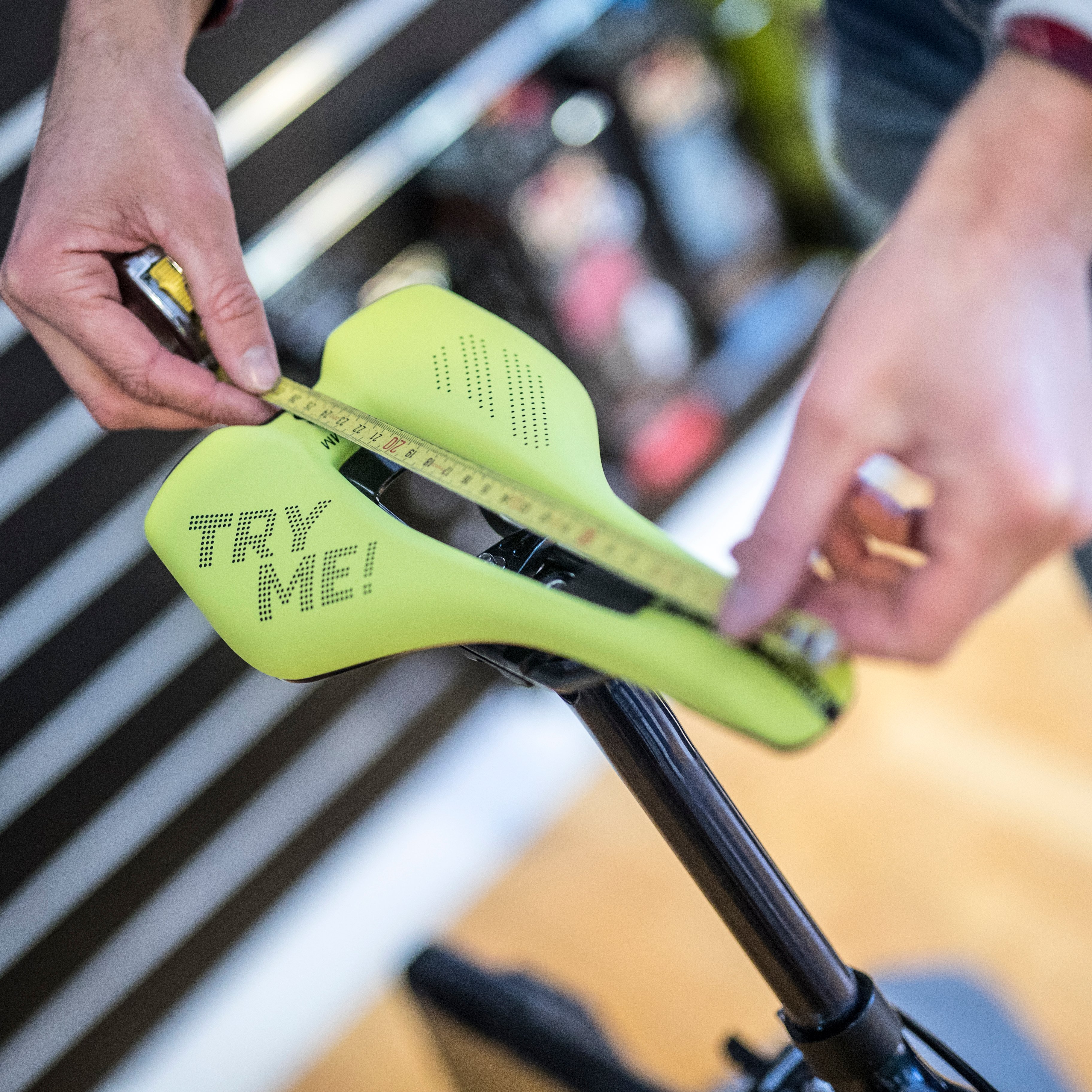 When buying a saddle, it is important that these sit bones are supported in the right way and in the right position on your saddle. If your saddle is too narrow, the sit bones are on the outside edge of your saddle. Which pulls them apart and can cause discomfort. When your saddle is too wide, the sit bones are positioned too far to the middle of the saddle, which also causes discomfort. To sit comfortably on your saddle, your sit bones must be well supported. The distance between these two bones is different for everyone. The best way to make sure you have the right width is to go into your local bike shop, they will have a special measuring tool to measure the width of your sit bones.