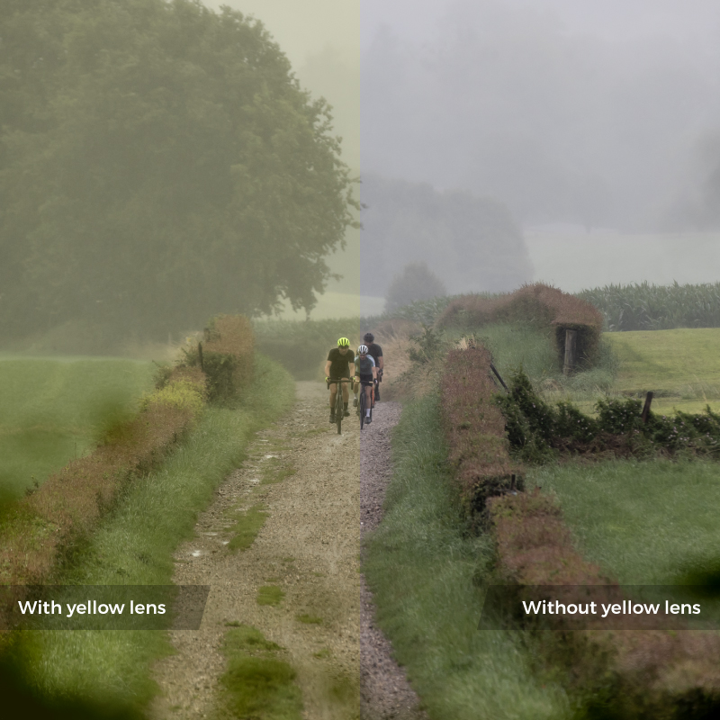 Die gelben Gläser sind speziell für Situationen mit wenig Licht entwickelt. Der gelbe Farbton verändert Licht und Kontraste, um die Sicht zu verbessern, selbst bei nebligen Bedingungen. Mit einer Lichtdurchlässigkeit von 87 % lassen sie so viel Licht wie möglich durch die Gläser.