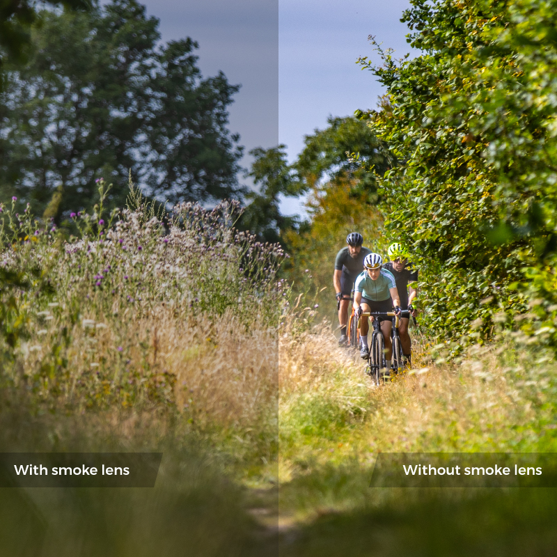 Das Standardglas in unseren Brillen ist ein Smoke- (oder MLC-) Glas. Die beiden zusätzlichen Gläser sind ein gelbes und ein klares Glas. Damit haben Sie bei jedem Wetter eine klare Sicht. Lesen Sie unten mehr über diese drei Arten von Gläsern.