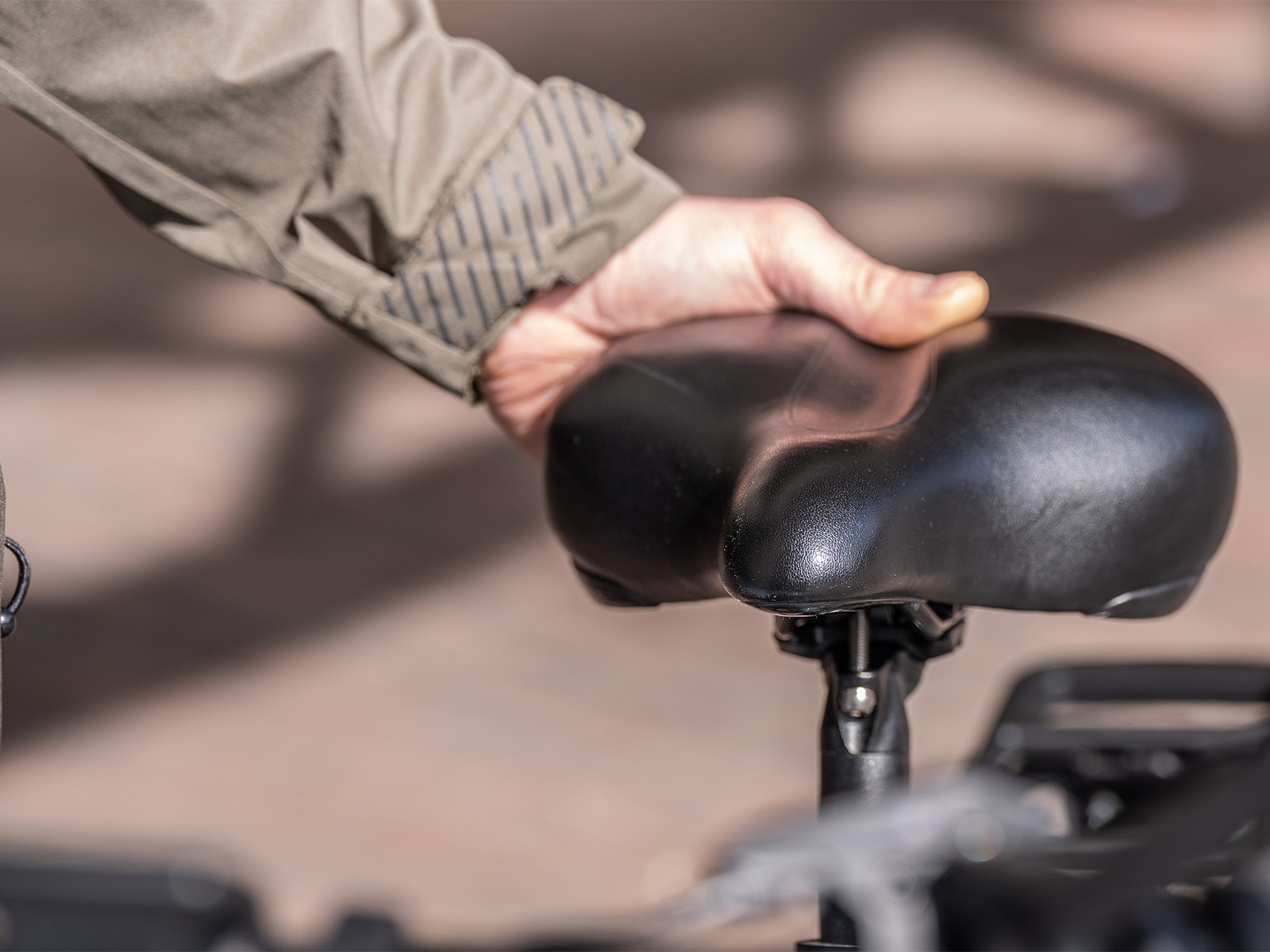 To avoid this, all our saddles have an integrated relief channel. Some even have a relief hole to take the pressure off completely. It keeps your sensitive parts free from pressure and your blood circulation intact. Without this channel in your saddle, it will cause pain and trouble in this area of the body. A cut-out divides the pressure evenly over the contact area. You will feel the comfort difference.