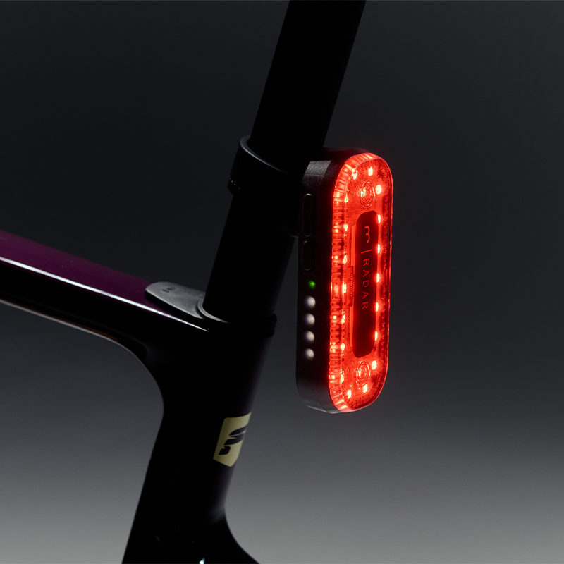 The Signal Radar is equipped with 6 different light modes, including 2 Steady (non-flash) modes, 1 Radar Only mode (where the taillight is off), and 3 Flash modes. The unique Peloton Mode is designed not to blind cyclists behind you, while still keeping you clearly visible to other traffic.