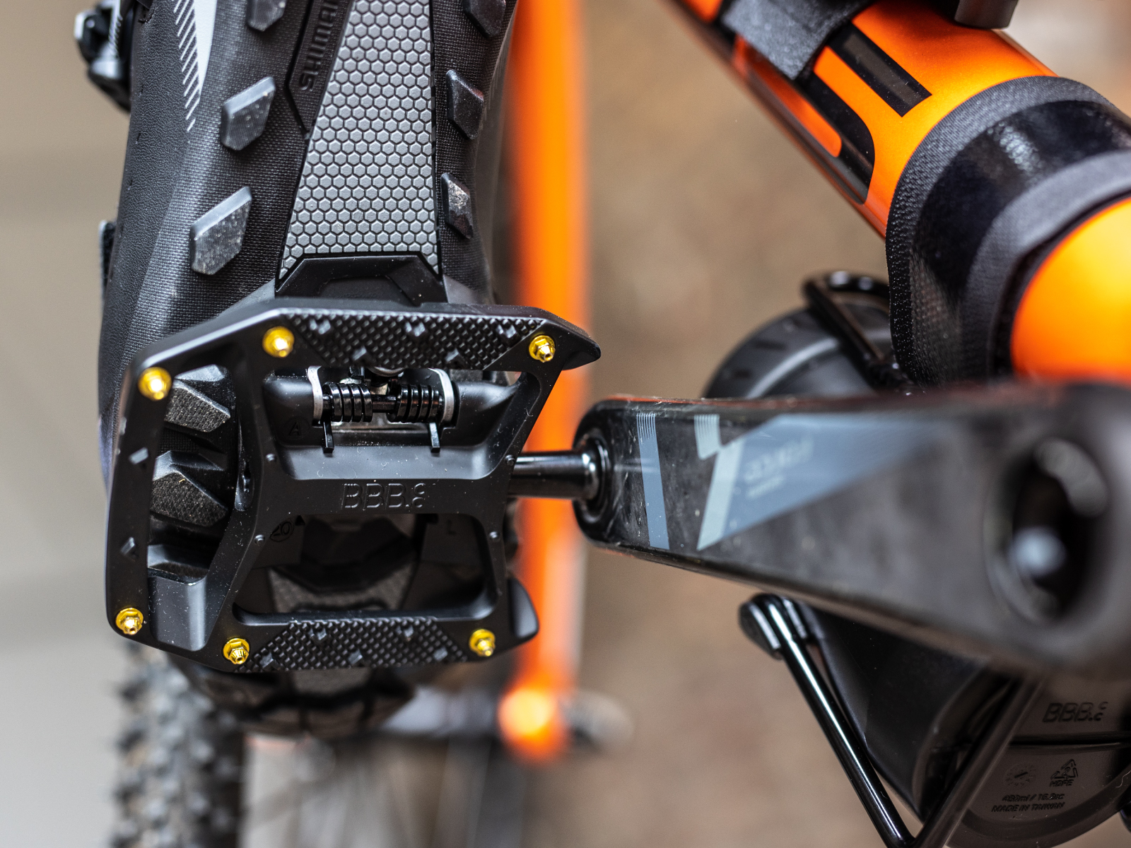 - Dvoj-funkčné pedále, jedna strana SPD kompatibilná a druhá protišmyková strana pre obuv s hladkou podrážkou