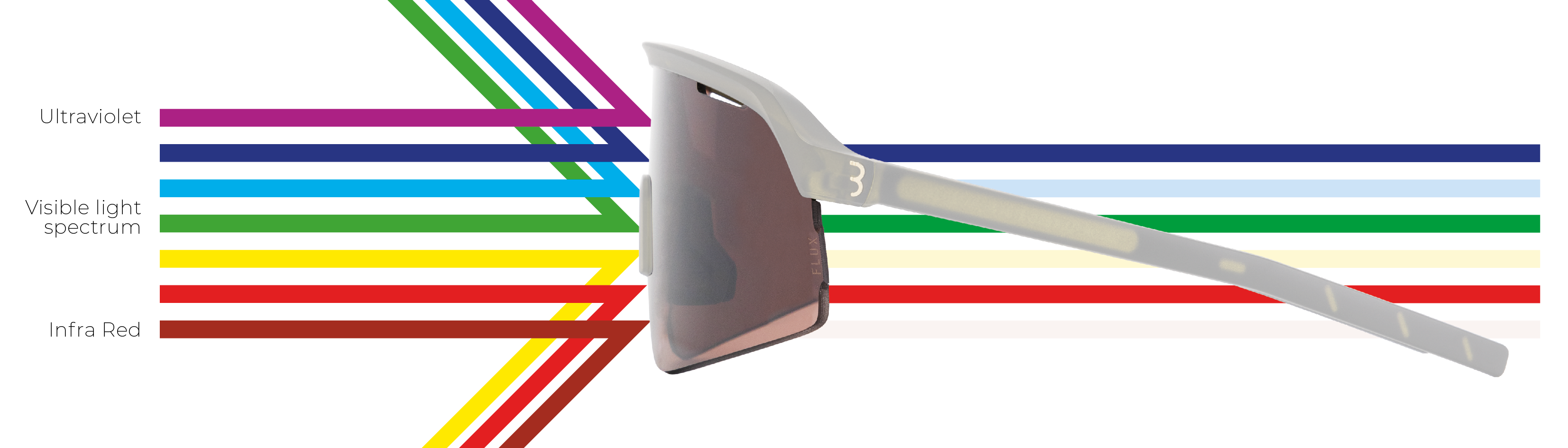The FLUX lens filters the wavelengths between the three base colours: red, green, and blue. With this filter, each of the four lens colors offer a better view in different surroundings.